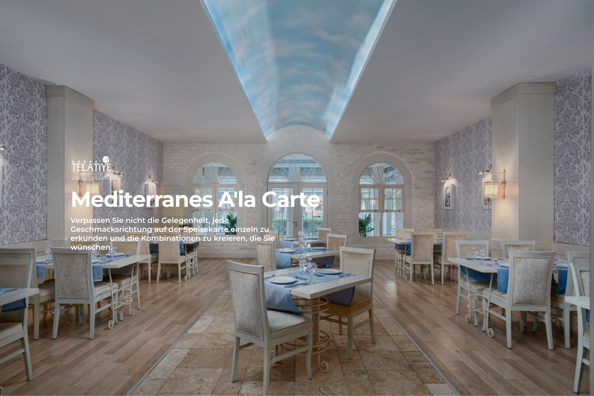 Das Hauptrestaurant des Telatiye Resort Hotels verspricht unseren geschätzten Gästen ein Fest des Geschmacks mit Menüs für jeden Geschmack, die sorgfältig nach internationalen Hygienevorschriften zubereitet werden, und geräumigen Bereichen für insgesamt 550 Personen, einschließlich Innen- und Außenbereichen.
